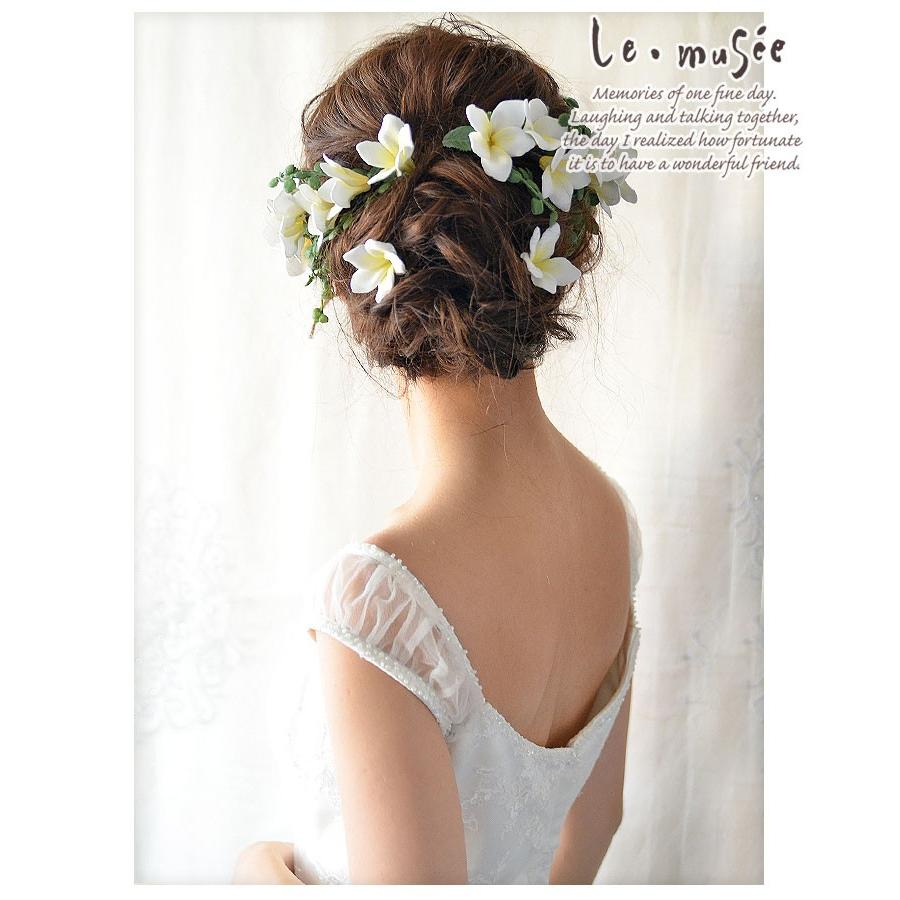 花冠 ヘッドドレス ウェディング 髪飾り ハワイ ナチュラル 結婚式 ブライダル プルメリア 2パーツ 造花 030 ウエディング専門店 ミュゼ 通販 Yahoo ショッピング